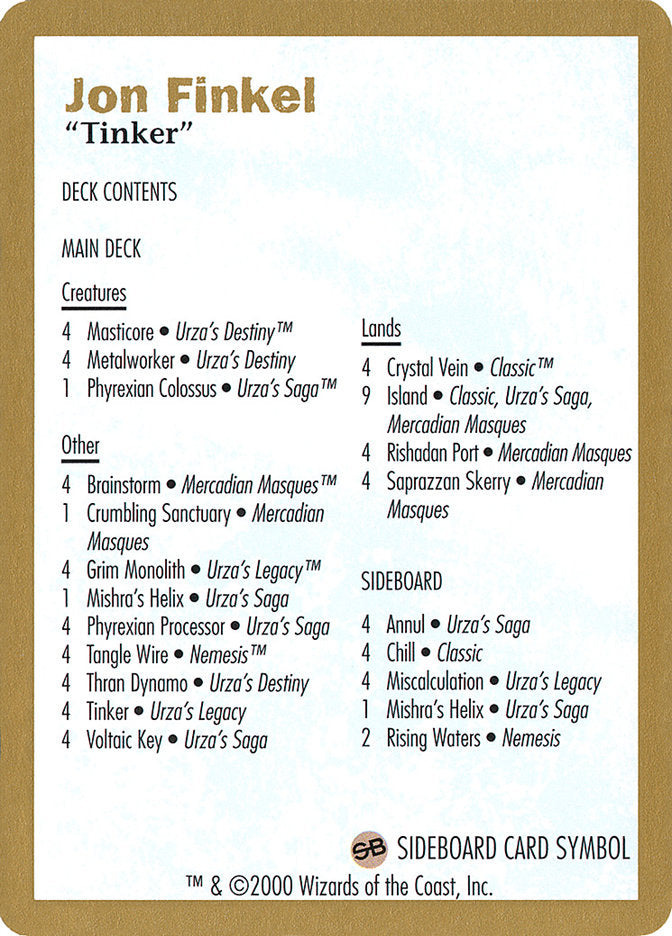 Jon Finkel Decklist [World Championship Decks 2000]